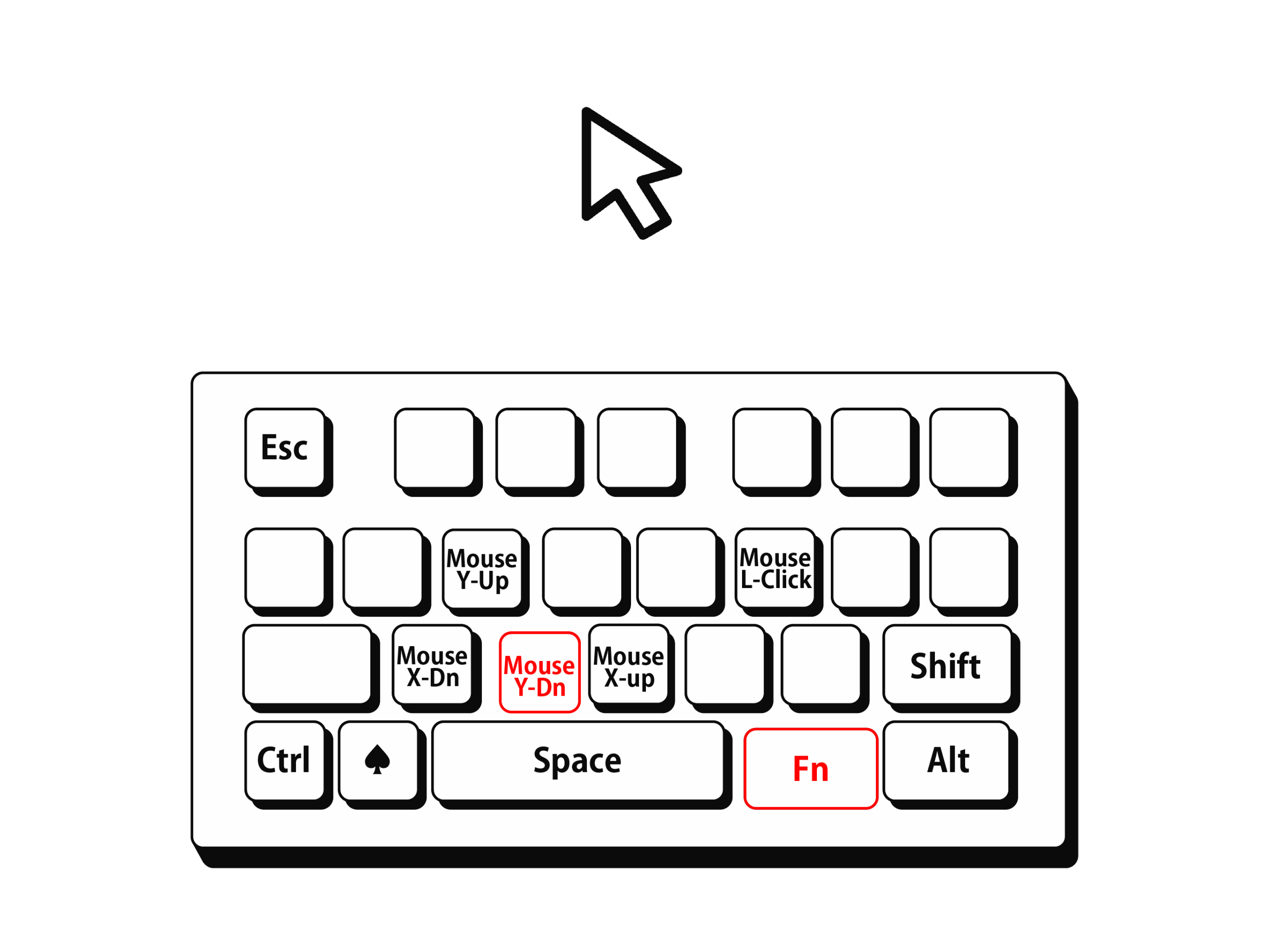 カーソル移動、スクロール、チルト(左右スクロール)、クリックをキーボード上の操作で可能となっています。